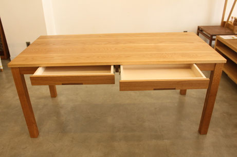 形は定番のシンプルな形。引き出しの取っ手部分はウォールナットを埋め込みました。